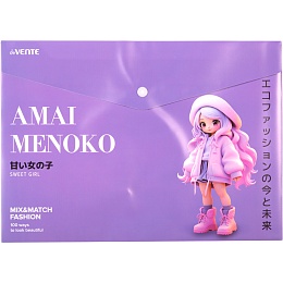 Папка-конверт на кнопке "deVENTE. Amai Menoko" A4 (330x235 мм) 180 мкм, непрозрачная с рисунком, фактура песок, индивидуальная маркировка