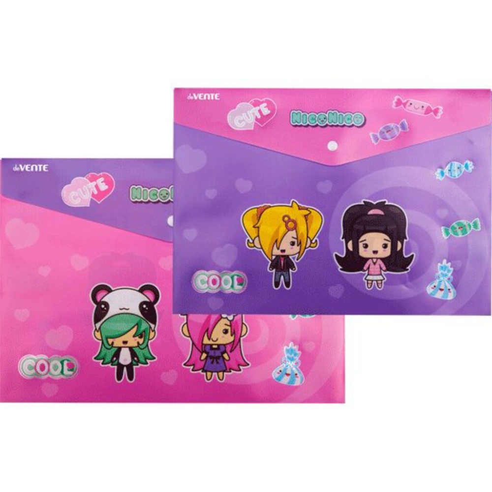 Папка-конверт на кнопке "deVENTE. NicoNico:-)" A4 (335x240 мм) 180 мкм, непрозрачная с рисунком, тиснение фольгой, индивидуальная маркировка, 2 дизайна ассорти