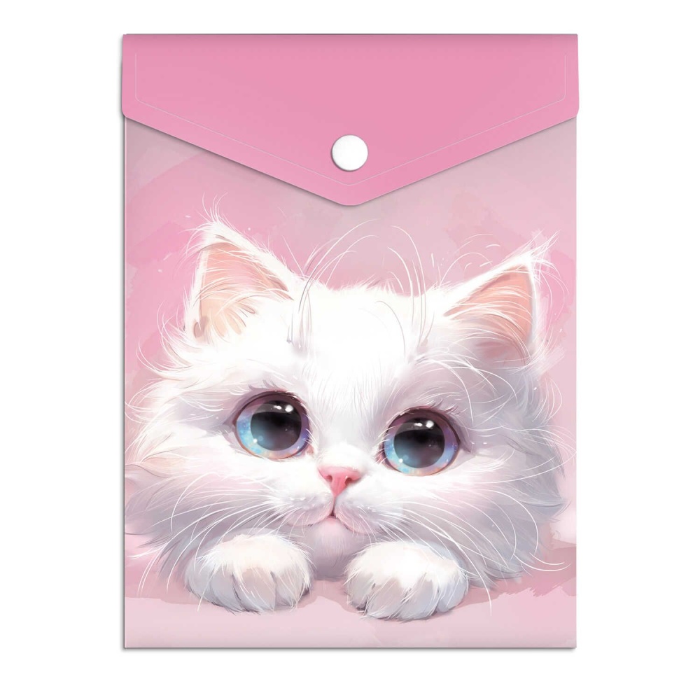 Конверт на кнопке с рисунком А6 (158*114мм) "Белый кот" УФ-печать