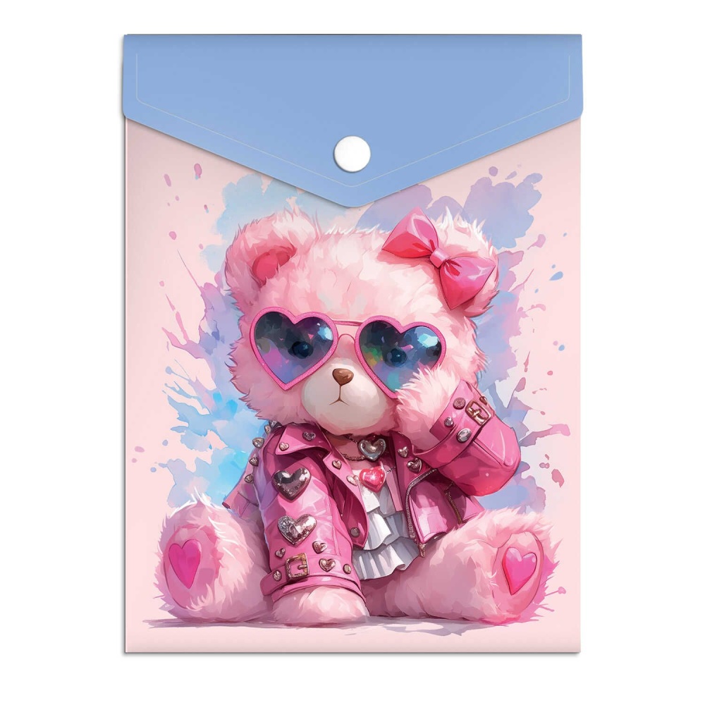 Конверт на кнопке с рисунком А6 (158*114мм) "Розовый мишка" УФ-печать