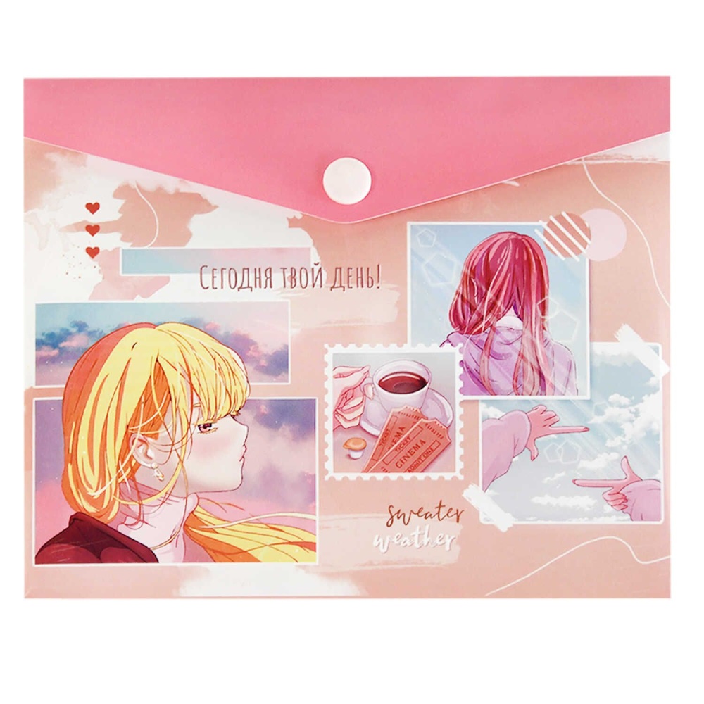 Конверт на кнопке с рисунком А6 (170*140мм) "Аниме-коллаж"