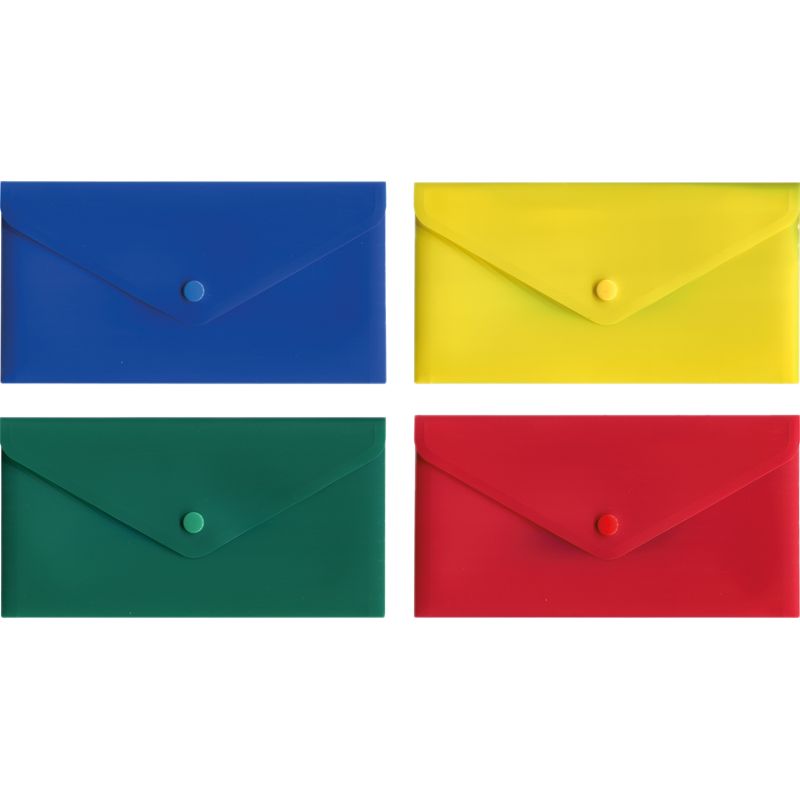 Папка-конверт на кнопке "Attomex" C6 (224x119 мм) 150 мкм, непрозрачная ассорти (красная, синяя, зеленая, желтая)