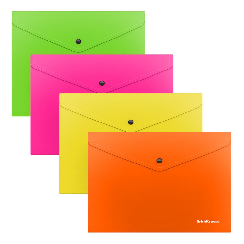 Конверт на кнопке В5 (282*229мм) полупрозр. Glossy Neon, ассорти