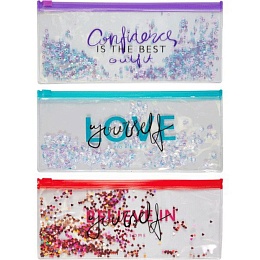 Конверт на молнии 220x95мм Glitter Dream" ПВХ 200мкм, с печатью и конфетти, 3 цвета ассорти