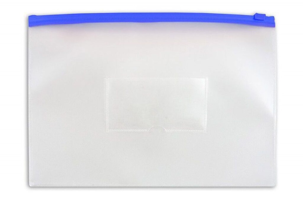 Конверт на молнии А4 0,15мм, карман д/визитки, синяя молния