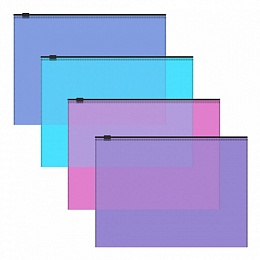 ZIP-пакет формата B5 из высококачественного полупрозрачного пластика с текстурой поверхности "апельсиновая корка", на которой не видно отпечатков пальцев и мелких царапин . Предназначен для хранения и транспортировки небольшого количества документов. Цвет ZIP-пакета ассорти: бирюзовый, синий, фиолетовый, розовый. Удобная ZIP-молния обеспечивает быстрый доступ к бумагам, оснащен карманом для визитной карточки. ZIP-пакет вмещает до 100 бумажных листов. Размер ZIP-пакета - 289х214мм, толщина материала - 0.14мм. Поставляется в различных вариантах цвета/дизайна без возможности выбора.