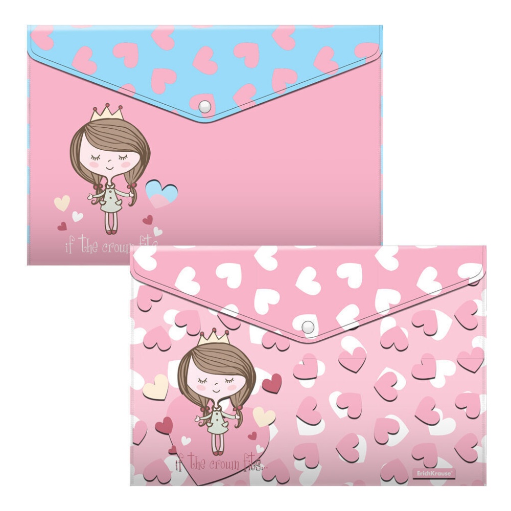 Набор из 4 папок-конвертов на кнопке пластиковых ErichKrause Пастель Нежная принцесса, A4, ассорти