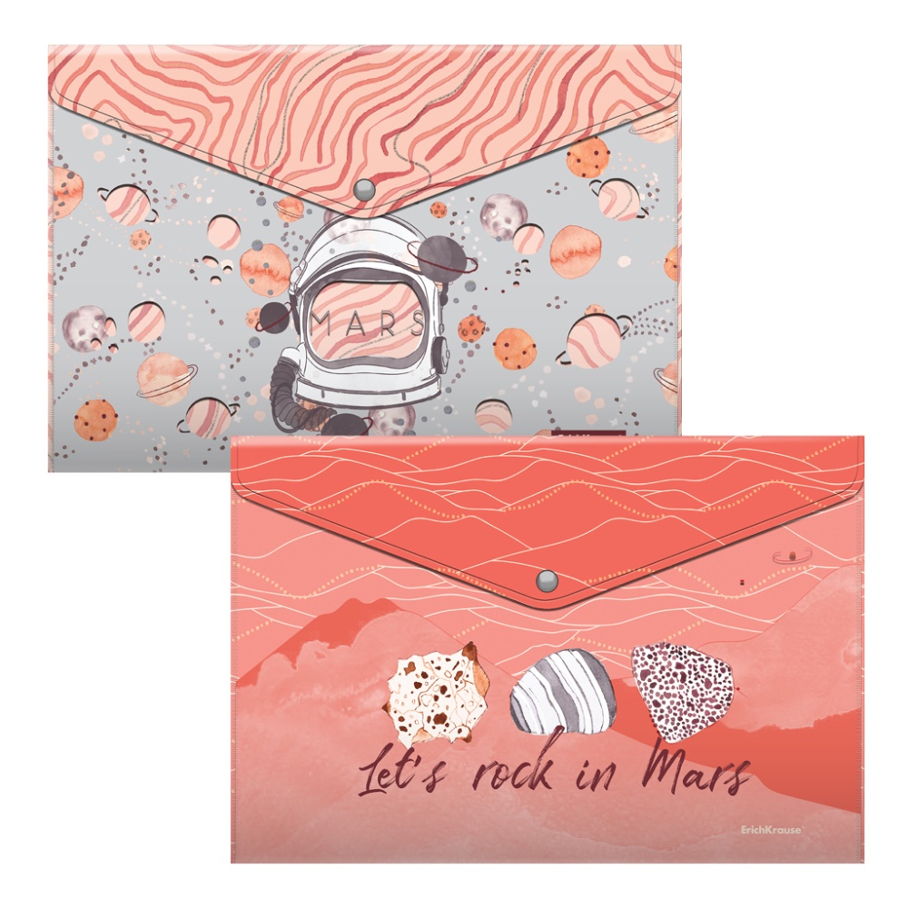Набор из 4 папок-конвертов на кнопке пластиковых ErichKrause Марсианка, A4, ассорти