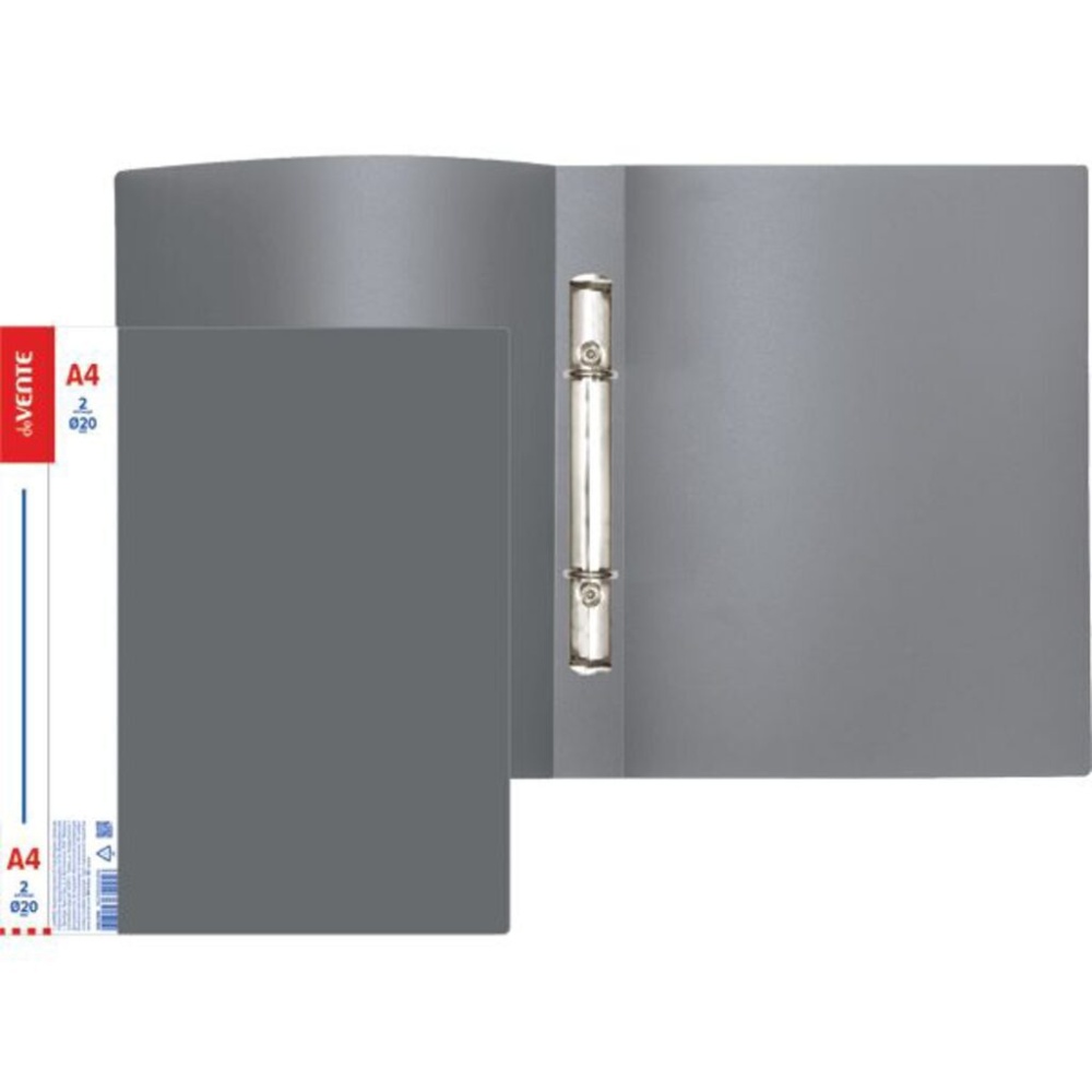 Папка на кольцах "deVENTE. Daily" A4, 2 кольца,  диаметр кольца 20 мм,  Ширина корешка: 25 мм 600 мкм, фактура "песок" сменная этикетка, непрозрачная серая