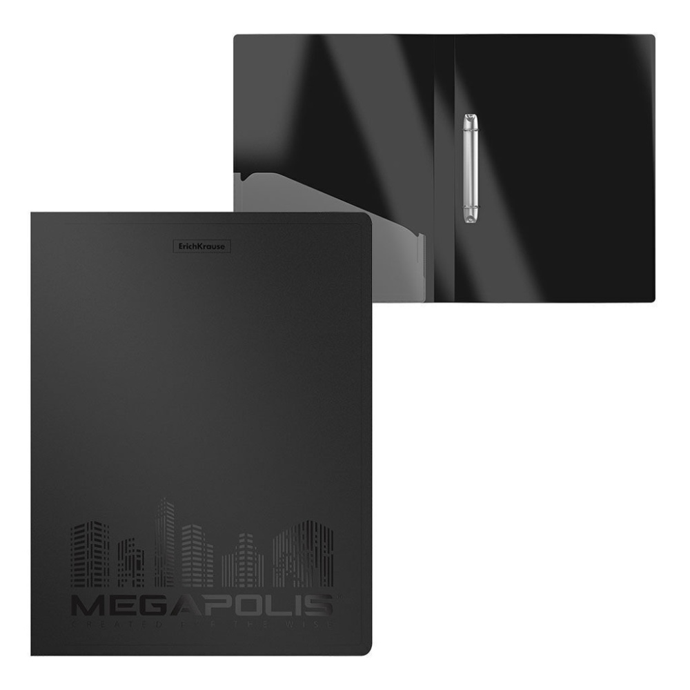 Папка на 2 кольцах пластиковая ErichKrause MEGAPOLIS, 24 мм, A4, черный (в пакете по 4 шт.)