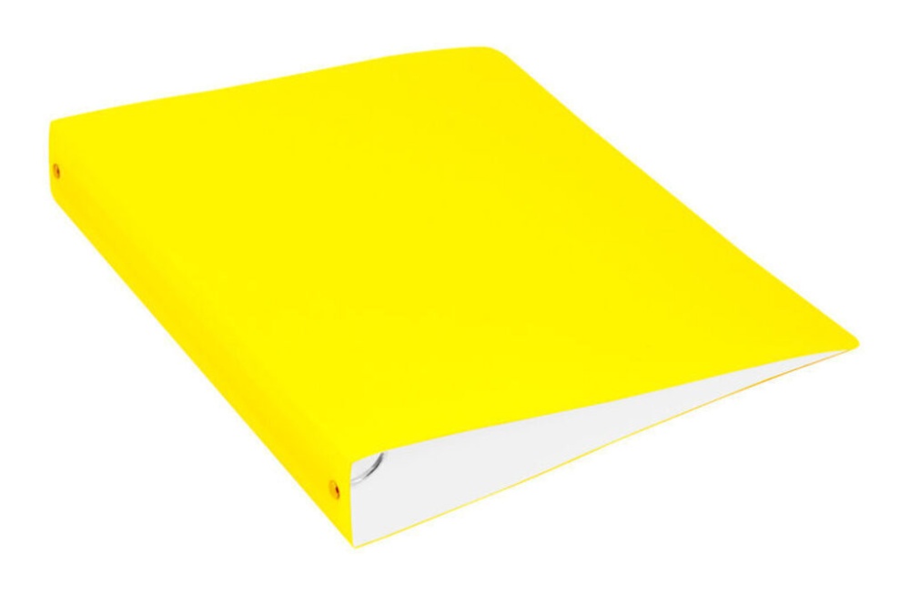Папка 4 кольца 40мм 0,7 мм пластик А4 Double Neon, карман, желтая
