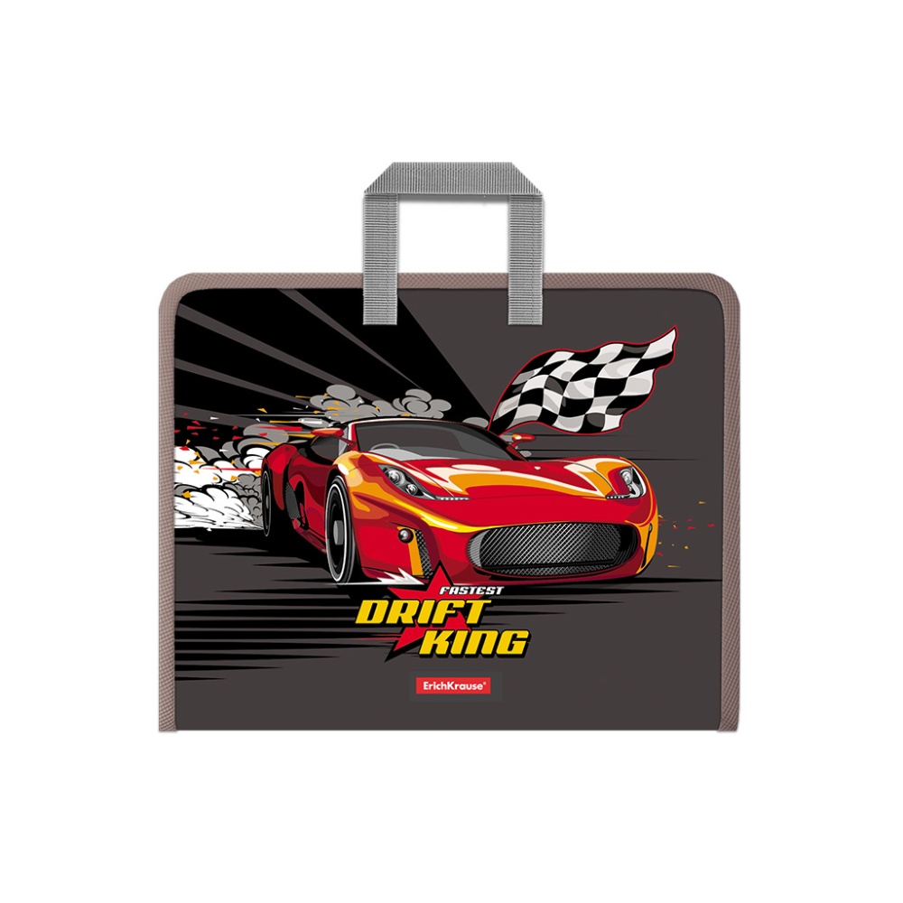 Папка на молнии пластиковая с ручками ErichKrause Король дрифта, A4+ (в пакете по 4 шт.)