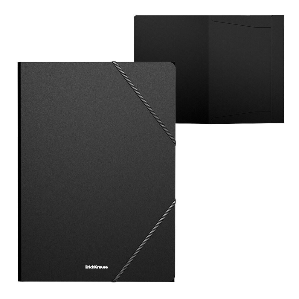 Папка на резинках формата A4 из высококачественного пластика с текстурой поверхности "песок", на которой не видно отпечатков пальцев и мелких царапин. Предназначена для хранения и транспортировки документов. Цвет папки - черный. Надежные застежки-резинки обеспечивают быстрый доступ к содержимому. Папка вмещает до 300 бумажных листов. Размер папки - 246х320х5мм, толщина обложки - 0.4мм.