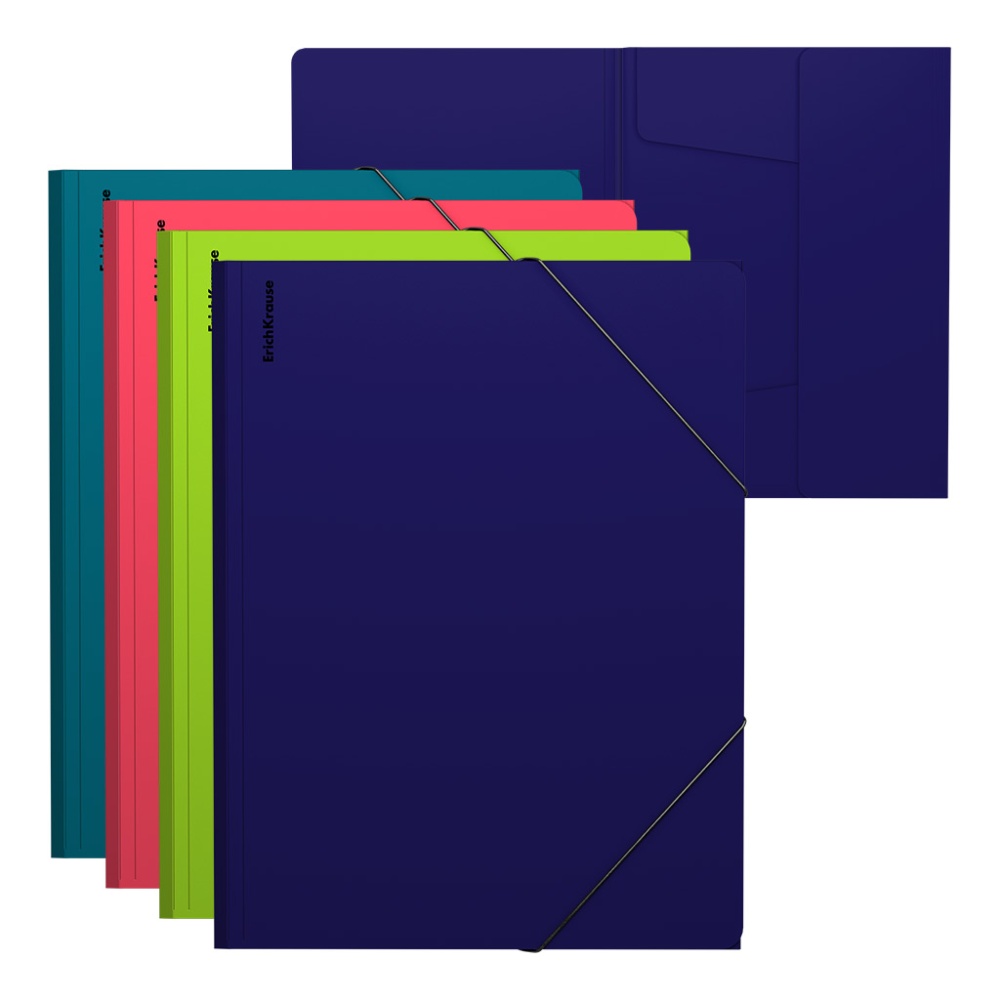 Папка на резинках формата A4 из высококачественного пластика с текстурой поверхности "софт-тач", на которой не видно отпечатков пальцев и мелких царапин. Предназначена для хранения и транспортировки документов. Цвет папки - ассорти: бирюзовый, индиго, коралловый, лайм. Надежные застежки-резинки обеспечивают быстрый доступ к содержимому. Папка вмещает до 300 бумажных листов. Размер - 246х320х5мм, толщина - 0.6мм.