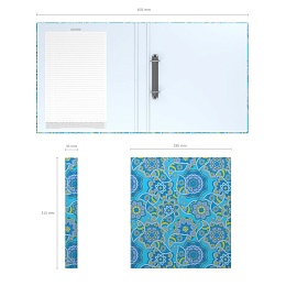 Папка - регистратор формата А4 снабжена механизмом на O-кольцах диаметром 25 мм. Изготовлена из картона толщиной 1,75 мм, покрытого матовой ламинированной бумагой с глянцевым УФ лаком. Корешок шириной 35 мм. Вместительность до 250 листов бумаги плотности 80 г/м?. Удобна для проведения презентаций, представления документации на семинарах. Завораживающий восточный орнамент.