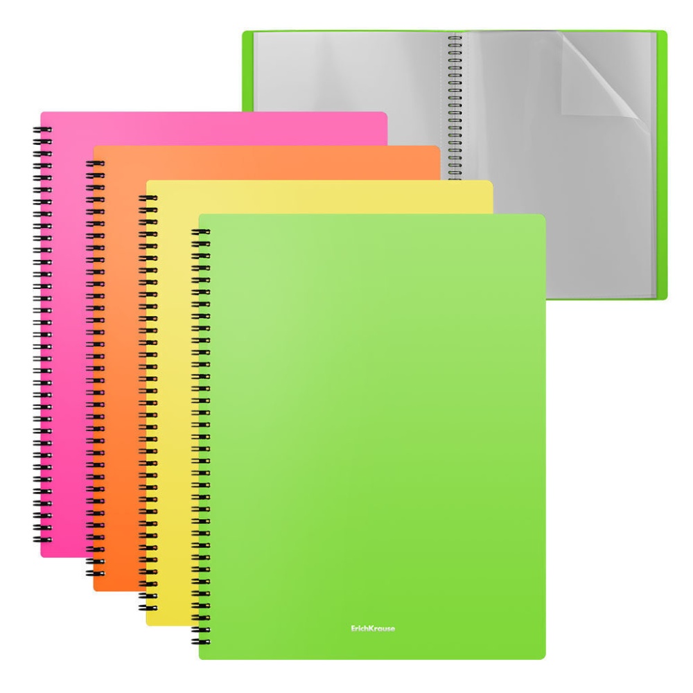 Папка файловая пластиковая на спирали ErichKrause текстура Песок Неон, с 40 прозрачными карманами, A
