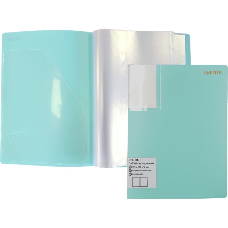 Папка с 20 вкладышами А5 "deVENTE. Pastel" А5 (156x225x20 мм), 500 мкм, фактура "песок" с клапаном на липучке, вкладыши 30 мкм, индивидуальная маркировка, непрозрачная бирюзовая