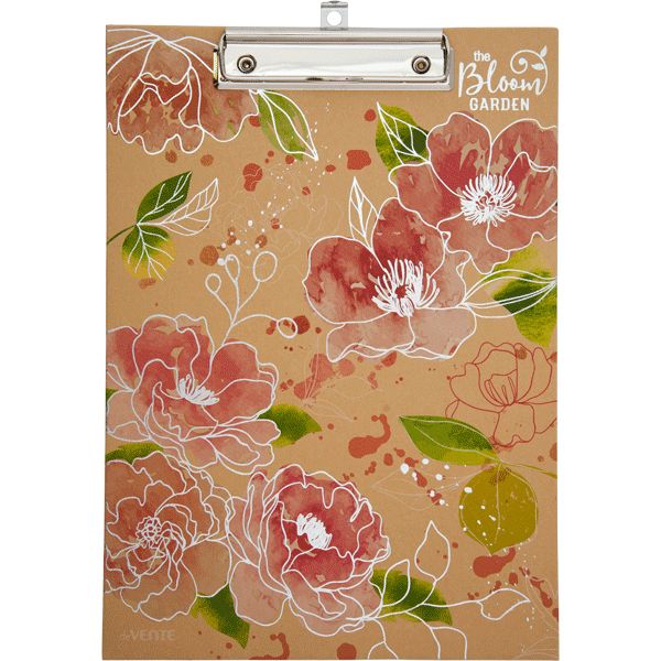 Папка-планшет формата А4 из высококачественного пластика с надежным прижимным механизмом Клипборд "deVENTE. Bloom Garden" A4 (225x315 мм) картон толщина 2 мм, крафт бумага, тиснение фольгой, индивидуальная упаковка
