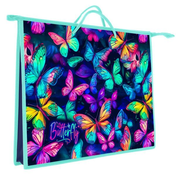 Папка А3 (460*345*40) с ручками, молния, пластик "Неоновые бабочки"