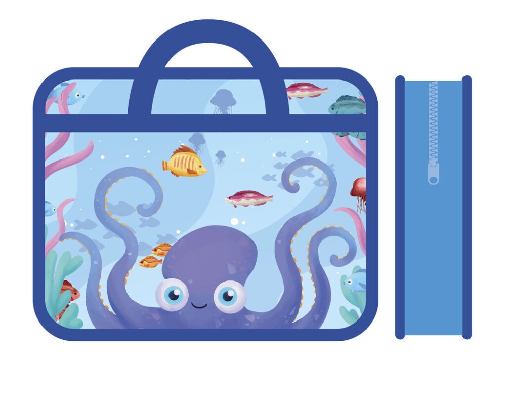 Папка А4 (330*260*120) с ручками, молния, пластик "Осьминог"