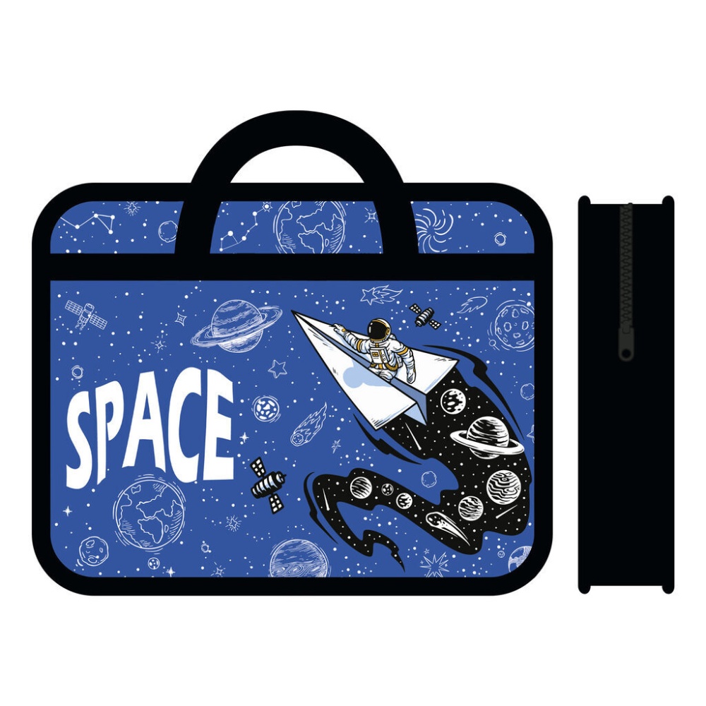 Папка А4 (330*260*75) с ручками, молния, пластик "Космос"