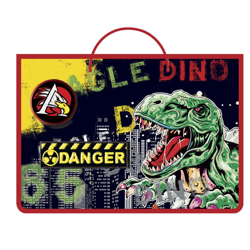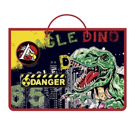 Папка А4 (335*235*55) с ручками, молния, пластик "Опасный дино"