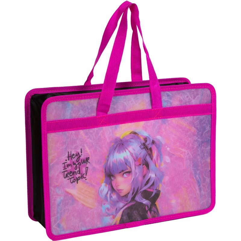 Папка А4 (335*260*100) с ручками, молния, пластик" Hey Girl"