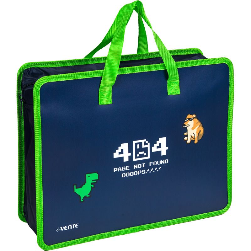 Папка для тетрадей, ИЗО и технологии "deVENTE. Online" A4 (33,5x26x10 см) с текстильным расширением 10 см, на молнии сверху, пластик 400 мкм, текстильные ручки, в пластиковом пакете