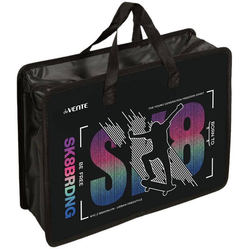 Папка для тетрадей, ИЗО и технологии "deVENTE. Skateboarding" A4 (33,5x26x10 см) с текстильным расширением 10 см, на молнии сверху, пластик 400 мкм, текстильные ручки, в пластиковом пакете