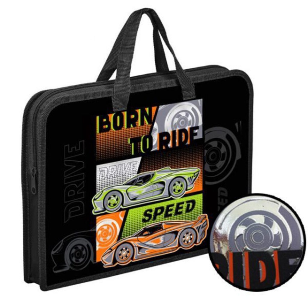 Папка А4 (340*245*40) с ручками, молния, пластик, фольга "Автодрайв" диз.с двух сторон