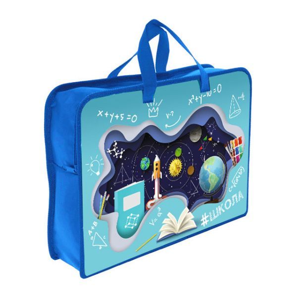 Папка А4 (340*245*40) с ручками, молния, пластик "Школьный мир"