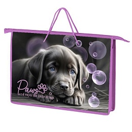 Папка А4 (340*245*45) с ручками, молния, пластик "Дай лапу"
