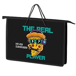 Папка А4 (340*245*45) с ручками, молния, пластик "Пицца геймер"
