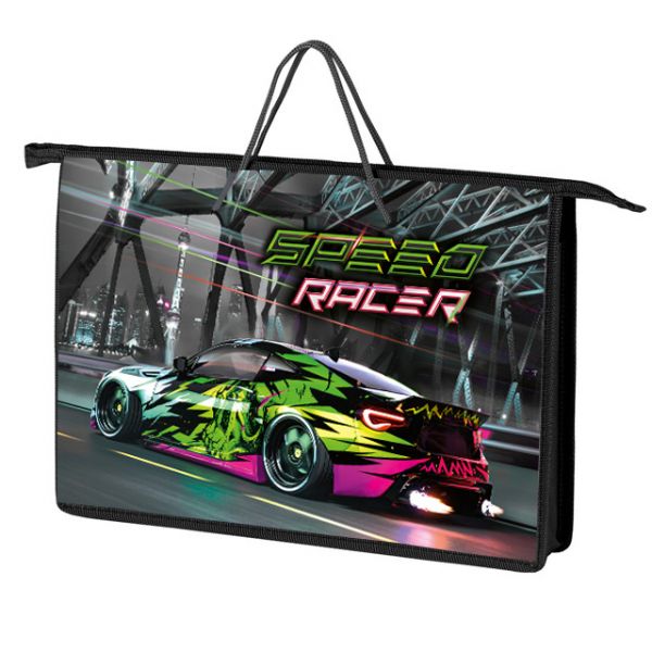 Папка А4 (340*245*45) с ручками, молния, пластик "Speed racer"