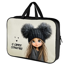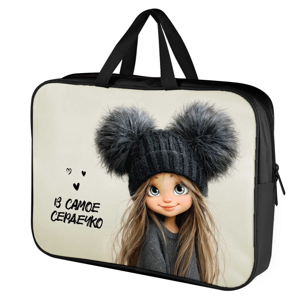 Папка А4 (345*260*70) с ручками, молния, ткань "Девчонка в шапке"