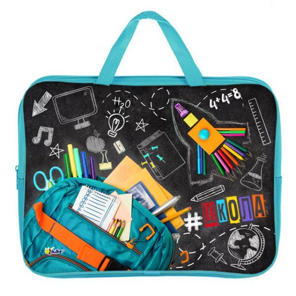 Папка А4 (350*265*45) с ручками, молния, ткань "Хэштег школа"