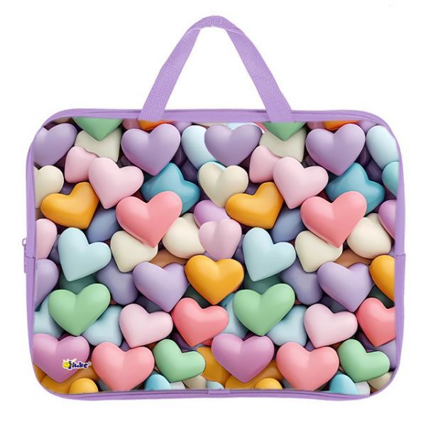 Папка А4 (350*265*45) с ручками, молния, ткань "Сердечки 3D"