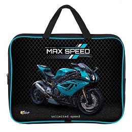 Папка А4 (350*265*80) с ручками, молния, ткань "Мотобайк"