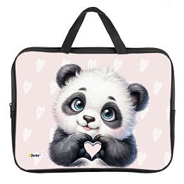 Папка А4 (350*265*80) с ручками, молния, ткань "Панда с сердечком"