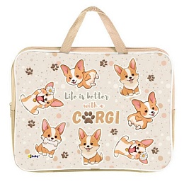 Папка А4 (350*265*80) с ручками, молния, ткань "Весёлые корги"
