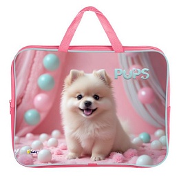 Папка А4 (350*265*80) с ручками, молния, ткань "Забавный шпиц"