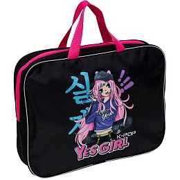 Папка для тетрадей широкая "Attomex. Yes Girl" A4 (35x27x7 см) текстильная, с текстильным расширением 7 см, на молнии сверху, с внутренним карманом, с текстильными ручками увеличенной длины 24 см