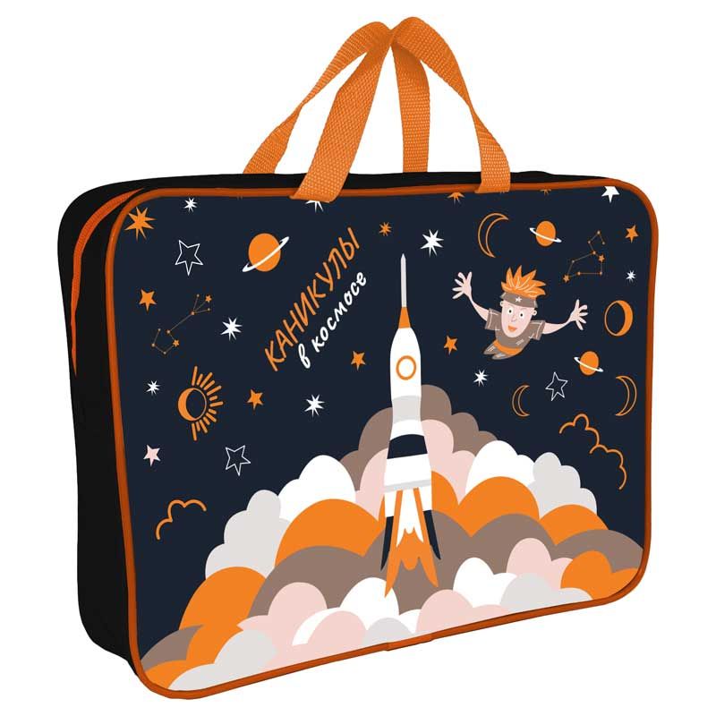 Папка А4 (360*270*80) с ручками, молния, ткань "Каникулы в космосе "