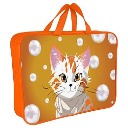 Папка А4 (360*270*80) с ручками, молния, ткань "Кошка и пузыри "
