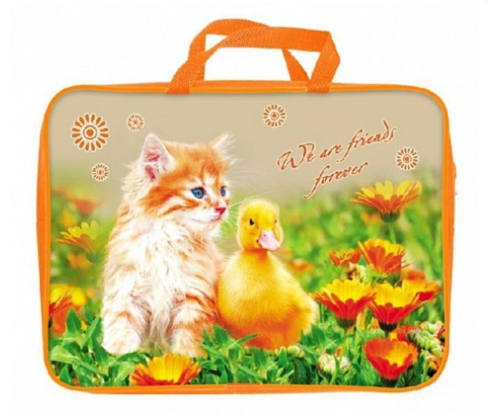 Папка А4 (360*270*80) с ручками, молния, ткань "Котенок и утенок"