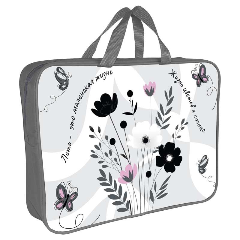 Папка А4 (360*270*80) с ручками, молния, ткань "Полевые цветы"
