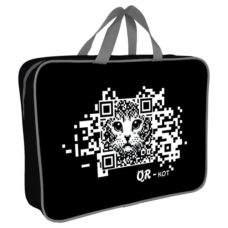 Папка А4 (360*270*80) с ручками, молния, ткань "QR-кот "