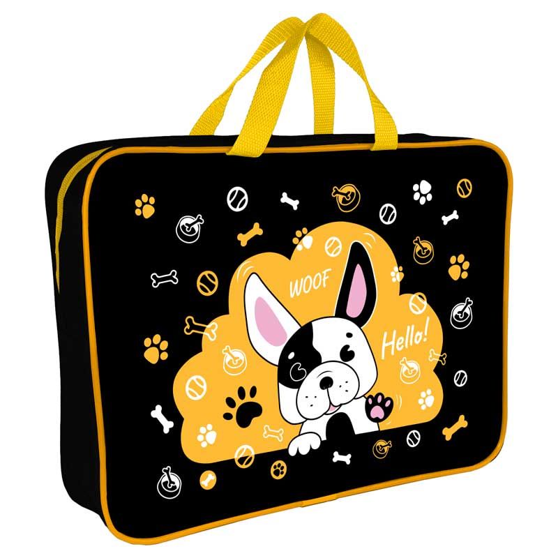 Папка А4 (360*270*80) с ручками, молния, ткань "Веселый бульдог"