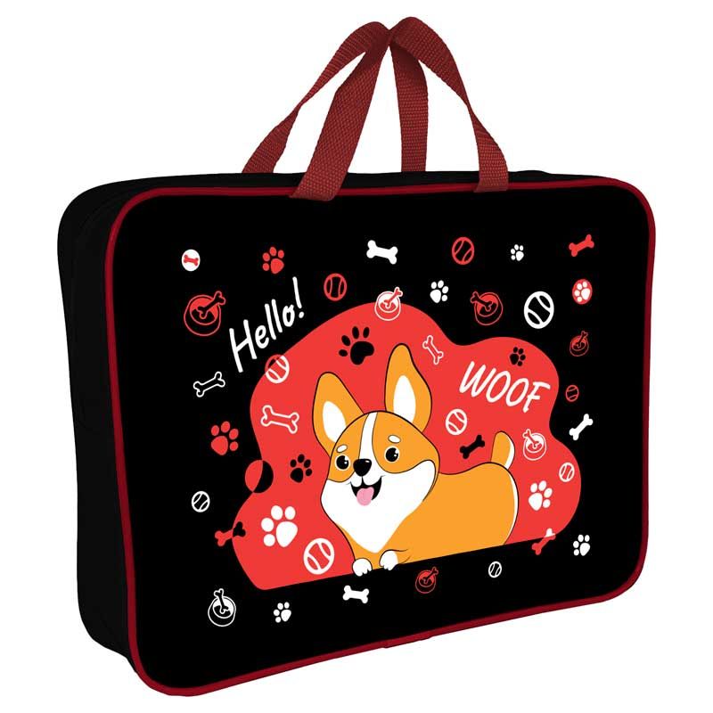Папка А4 (360*270*80) с ручками, молния, ткань "Задорный корги"