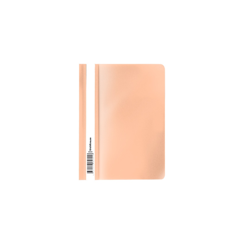 Папка-скоросшиватель формата А5+ из высококачественного пластика с текстурой поверхности "песок", на которой не видно отпечатков пальцев и мелких царапин. Предназначена для быстрого сшивания, хранения и просмотра документов. Цвет папки ассорти: голубой, зеленый, персиковый, фиолетовый. Механизм - механический скоросшиватель; прозрачный верхний лист; усиленный пластиковый корешок с прозрачной полосой для информационной карточки. Размер - 230х170мм, толщина верхнего листа - 0.12мм, толщина нижнего листа - 0.18мм. Код и баркод на каждой единице товара.